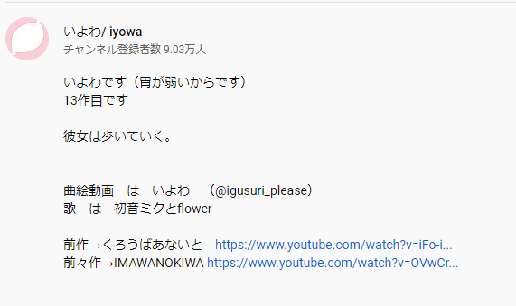 유튜브에 투고할 때 보카로P가 개요란에 올려두는 한 마디 명언에, 이번에 '그녀는 걸어간다 彼女は歩いていく' 라고 써뒀잖아요.